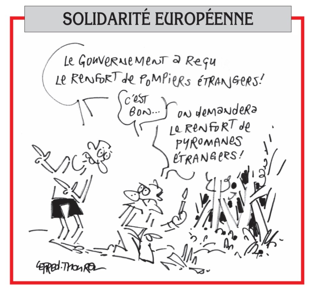 On revient au sujet des incendies. C’est vrai qu’il y a de nouveaux pompiers venus d’Allemagne, d’Autriche, de Roumanie et de Pologne pour lutter contre les incendies en Gironde. Je ne comprendrai jamais les pyromanes non plus.