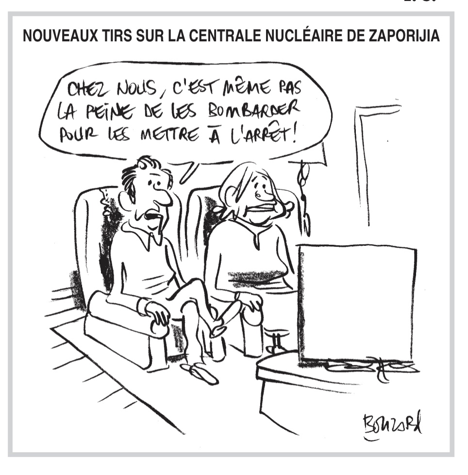 Je ne me souviens pas si je l’ai déjà dit, mais j’admire tellement les centrales nucléaires françaises. On l’interdit en Californie et on demande en même temps pourquoi il y a des pénuries d’énergie. En Ukraine, il y a un risque en ce moment que les russes feront sauter une centrale. Mais comme Le Canard nous dit, il y a malheureusement des problèmes avec celles en France, à cause de problèmes avec les tuyaux, pas de bombardements. Il y en a d’autres avec des risques à cause de la sécheresse.