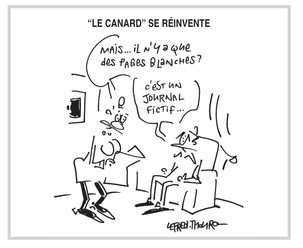 Je viens de recevoir un message des responsables du Canard enchaîné. Ils étaient gentils, mais je comprends parfaitement leur plainte. Je ne le reproduirai pas ici, mais ils m’ont dit que vu que c’est leur seule source de revenus, veuillez ne pas partager leurs dessins la même semaine où ils sont publiés.