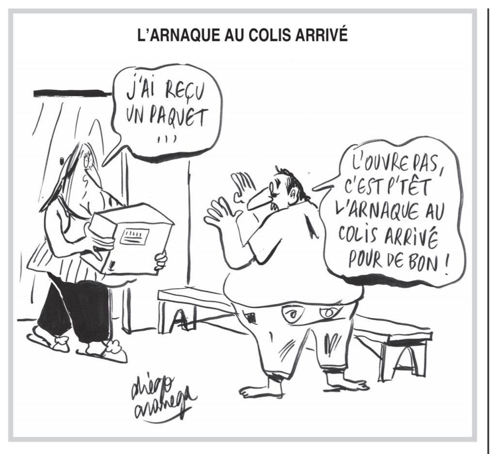 Quant aux arnaques de colis, nous sommes aussi dans le même bateau. Bon, pas moi, parce que je ne commande rien sur Internet sauf chez FNAC, et aucun arnaqueur anglophone ne pense à écrire de faux messages d’une entreprise française. Mais le reste de mes compatriotes, ben oui.