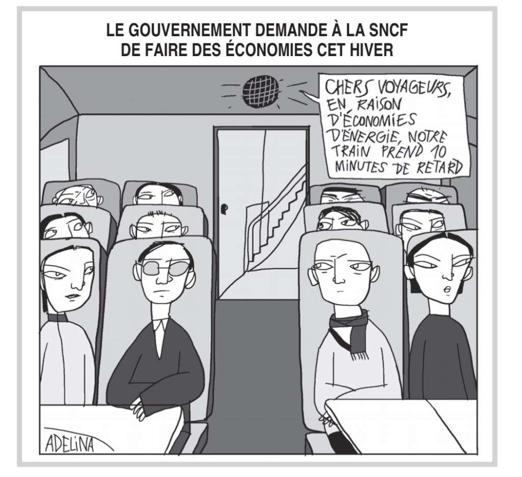 On est moins dans le même bateau quant aux demandes de la SNCF d’économiser. Il y a déjà presque aucun transport sur les rails ici, alors rien à économiser ! Mais ne vous inquiétez pas — en Californie, on n’a plus assez d’électricité, et on va aussi bannir les voitures à essence pour augmenter la demande d’électricité. Ça ira, j’en suis sûr.