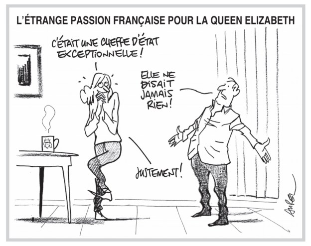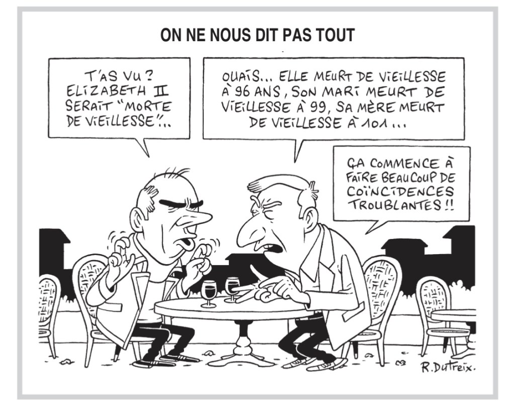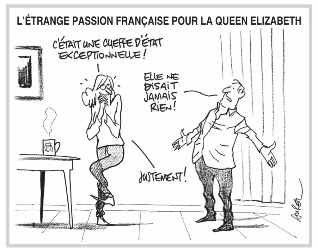 La plus grande nouvelle cette semaine est sûrement la mort de la Reine Elizabeth II. Je ne suis pas toujours d’accord avec Le Canard, surtout quand ils parlent des États-Unis, mais la seule personne dont je me suis plaint de son traitement aux mains du Canard, c’est la Reine (voilà, voilà, et voilà). J’ai mon côté monarchiste, car je l’admire, et le Roi Juan Carlos de Borbon en Espagne aussi. Mais ce dernier a fini par abdiquer à cause de ses propres scandales. Personne ne peut vraiment imaginer une telle chose chez la Reine Elizabeth II.