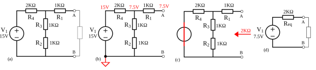 Pourquoi donc avoir des circuits qui ne sont pas les plus simples ? La réponse, c’est qu’il reste d’autres fonctionnes pour les éléments du circuit. Par exemple, si vous voulez jouer un CD, ou bien un fichier MP3, l’électricité sera converti de forme numérique en forme analogique avec un réseau de résistances très similaire au circuit à gauche. (Il y a d’autres manières possibles ; laissez tomber, les ingénieurs.) On ne peut pas complètement nous débarrasser de circuits compliqués. Mais si on veut savoir combien de pouvoir électrique sera consommé par le réseau de résistances, on peut trouver l’équivalent Thévenin, et on le saura vite. (Sinon, on met des Linky partout. Je dis ça, je dis rien.)
