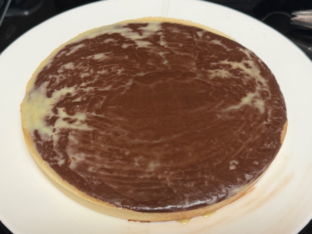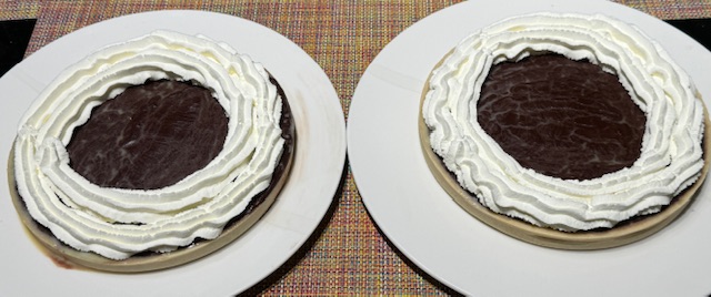 Alors, rembobinons 12 heures en arrière, hein ? Je vous ai dit que j’allais revenir ce soir aux soirées ciné, et cette fois, nous avons eu un dîner ensemble, genre « potluck », comme on dit chez moi, où tout le monde apporte ce qu’il veut. (Je ne sais jamais quoi dire pour ça.) J’ai fait une tarte aux noix de pécans, étant en mode « finissez les ingrédients dans votre cuisine, vous ». Je suis déçu de la croûte, mais l’appareil reste parfait comme toujours avec cette recette :