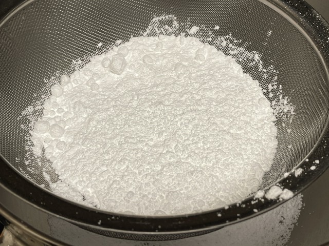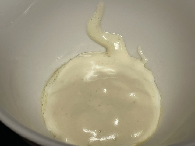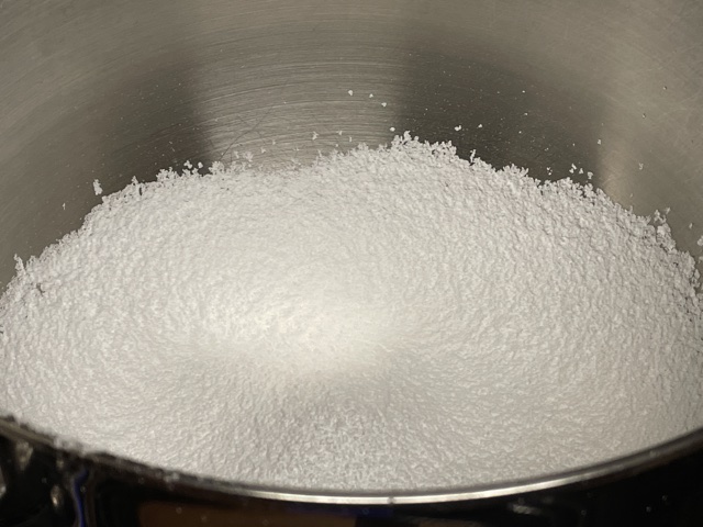 Ce praliné est plus sucré que l’autre, parce qu’il n’y a pas de haute température qui brûle le sucre. J’aime le goût, mais il manque la fluidité d’un praliné typique, ce qui le rendra plus difficile à utiliser dans certaines applications. La poudre de pralin (4e photo) produit est trop fine aussi. Vous pouvez le voir facilement une fois dans un bol :