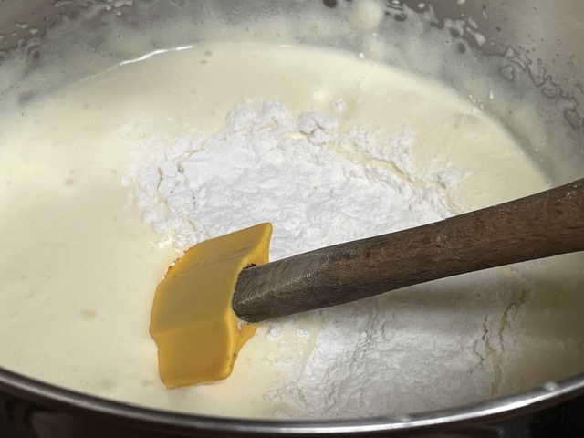 - Verser le sucre et l’eau dans une casserole. Porter au-delà d’ébullition, jusqu’à 118° C.