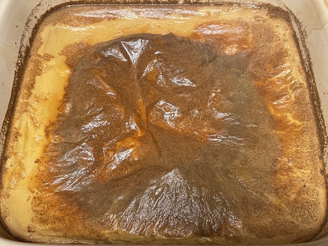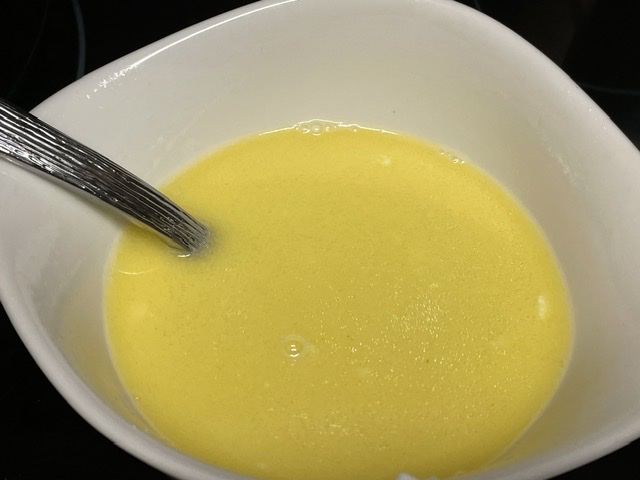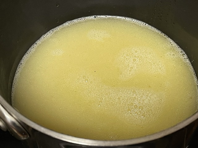 - Pour l’enrobage des mentchikoff : le lendemain, mélangez au bain-Marie les blancs d’œufs avec le sucre glace, et fouettez le tout jusqu’à ce que le mélange atteigne les 50°C. — L’enrobage est le truc difficile de cette recette. Pas cette étape, mais ce qui suit. Les photos ici montrent le progrès à 30, 40, et 50 ºC. Les différences ne sont pas grandes.